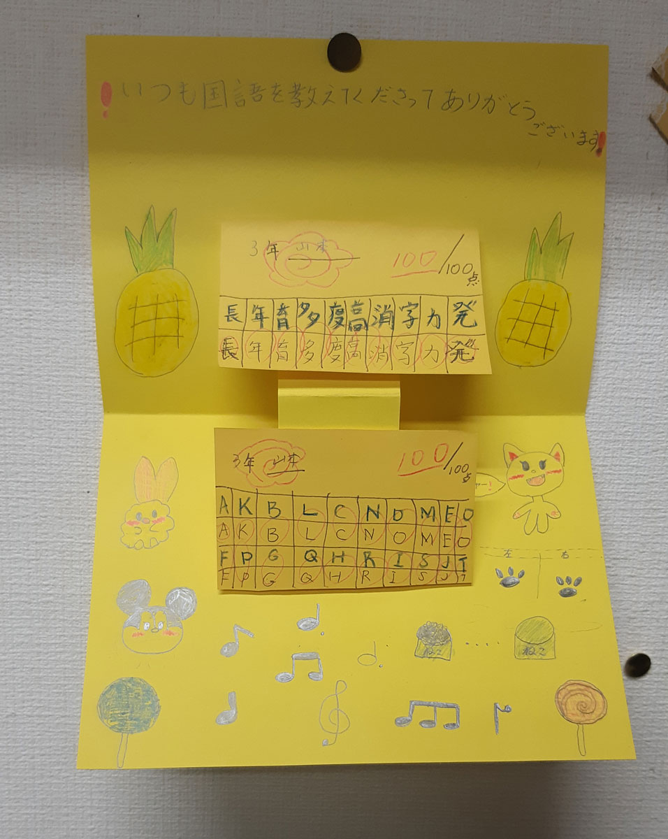 グローバルな人間に育ってもらいたいため、英語は幼児から必修科目として学習します、漢字も書けるように指導します。